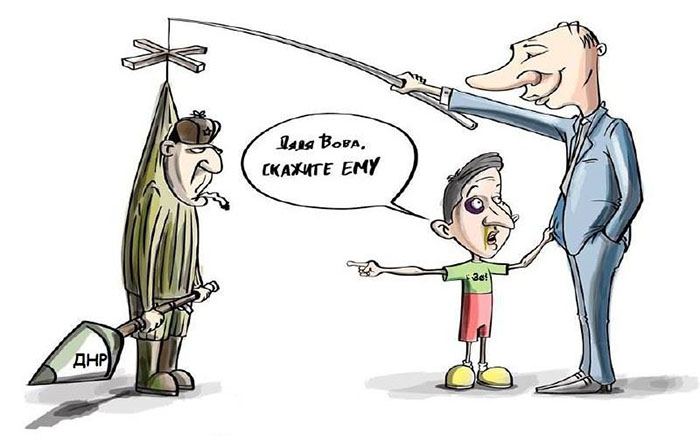 "Во время визита в Латвию президент Украины Владимир Зеленский, отвечая на вопрос, готов ли Владимир Путин к соблюдению договоренностей с Украиной, заявил, что стремление к миру "есть у всех сторон". Обстрелы украинских позиций при этом не прекращались, люди гибли, в Москве члены Совета Федерации пугали украинцев вечной войной, а главарь "Донецкой народной республики" Денис Пушилин вообще призвал к демонтажу Украинского государства, невольно выдав подлинные планы Кремля.