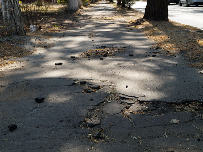 Весь тротуар на противоположной от парка стороне дороги теперь представляет собой сплошную полосу препятствий, абсолютно недоступную для передвижения.