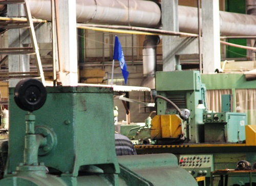 Но шибче всех демонстрировали полную лояльность родной партии на КЗТС. Здесь удочками с милыми голубенькими флажками украсили не только вход в цех, но и некоторые станки. И не поленились же лезть на верхотуру!