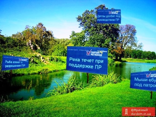 Как известно, в Украине нынче без поддержки Партии регионов ни птицы не поют, ни деревья не растут. Однако умные люди говорят, что все хорошо в меру. И зашкаливающий все нормы вменяемости объем рекламы от регионалов, да еще и в собственной вотчине, навевает на определенные мысли про комплекс неполноценности, вы не находите?