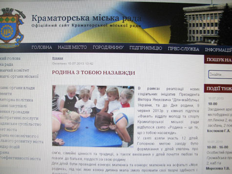 Сегодня, в целях информационного просвещения, посетил официальный сайт Краматорского горсовета, и обнаружил на нем заметочку под названием "Родина с тобою назавжди". С прилагающимся к заметочке фото.