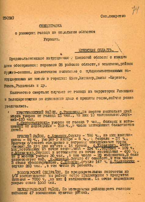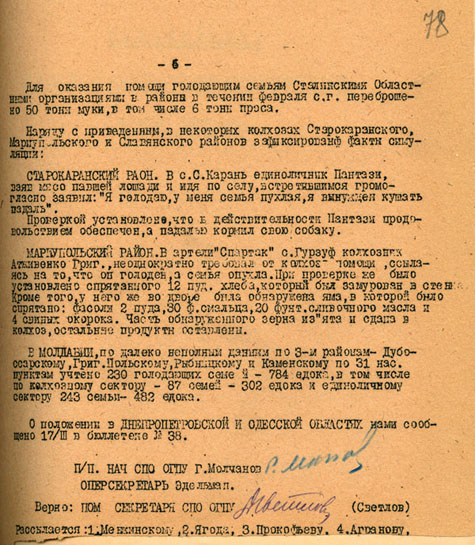 Голод в Украине, сов. секретный бюллетень ГПУ. Источник: Генеалогический форум ВГД
