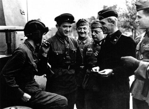 Сентябрь 1939 года, конец польской кампании. Советские и немецкие военнослужащие в Бресте, обмен опытом. Источник: "Фотохронограф"