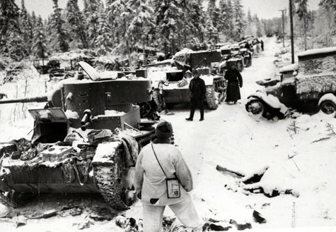 Военная добыча – захваченные советские танки в снегу 17 января 1940 года. Финские войска только что победили советский дивизион. Источник: "Новости в фотографиях"