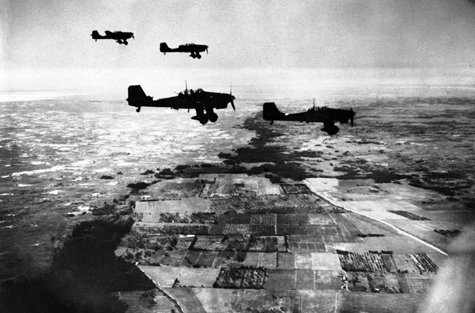 Немецкие пикирующие бомбардировщики «Штука» на пути к цели над территорией между Днепром и Крымом 6 ноября 1941 года. Источник: "Новости в фотографиях"