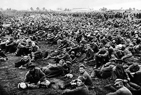 Фото, сделанное немецким фотокорреспондентом, для доказательства больших успехов на московском направлении. 650 тысяч солдат Красной Армии, попавших в плен в котлах под Брянском и Вязьмой. Их должны транспортировать в лагерь для военнопленных 2 ноября 1941 года. Источник: "Новости в фотографиях"