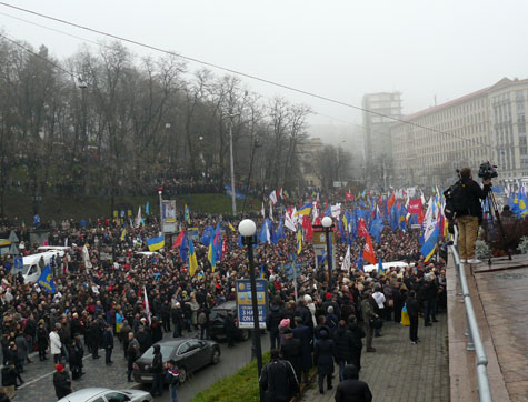 - Я – не Господь Бог, загадывать трудно. Но я видел настрой людей, вышедших вчера в Киеве на улицу. Этот настрой остался еще с майской акции «Вставай, Украина», и он таков: если им, для того чтобы убрать из страны этот режим, нужно стать стеной вокруг Кабмина, парламента и администрации президента – они встанут. И будут стоять день, неделю, месяц, год, - сколько нужно. И они уже не будет петь песен и просто махать флагами, нет. Основной контингент людей, которые шли вчера по Киеву – это граждане возрастом от 25 лет и выше. Это – совершенно сознательная, зрелая часть нашего общества, понимающая, что и кто мешает нашей стране встать на ноги.