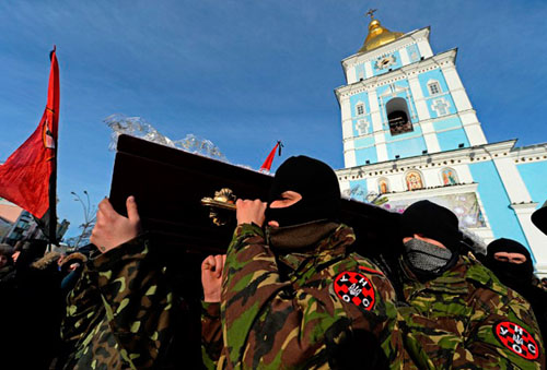 Похороны погибшего оппозиционера, гражданина Белоруссии Михаила Жизневского, Киев, 26 января. Фото: Василий Максимов / AFP