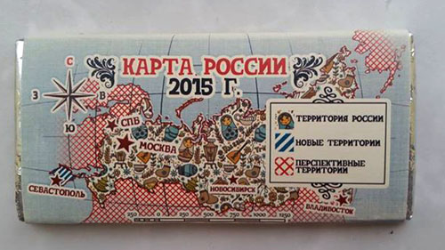 Нетрудно увидеть, что под "перспективными территориями" на обертке шоколадки подразумеваются все территории, прилегающие ныне к России.