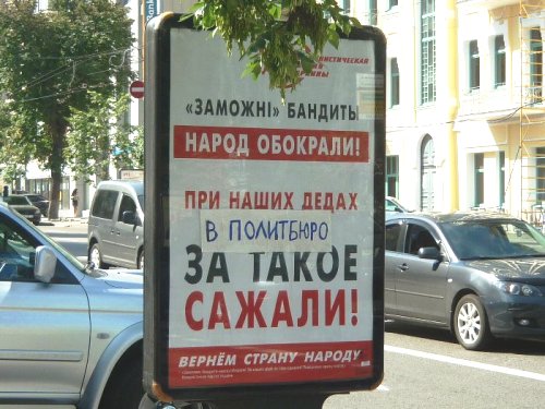 Реклама КПУ этого сезона - впечатляет. Своей тупой агрессивностью она направлена ??на люмпенов, а ее лозунги о "богатых" и "находящихся у власти" напоминают о... самих КПУшниках.