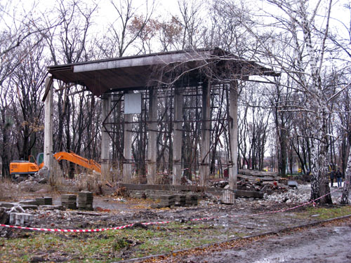 В четверг, 10 ноября, в реконструируемом краматорском парке им. Пушкина начался снос открытого летнего кинотеатра. Сегодня от него осталась лишь груда развалин да остатки крыши над сценой.