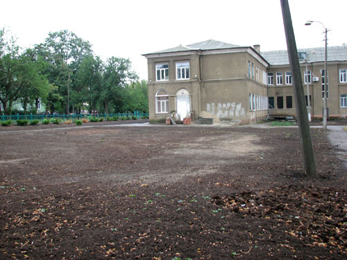 Деревья и кусты на входе в приют уже безжалостно унитожены. Надо понимать, что, в представлении нынешнего руководства краматорского "Центра социально-психологической реабилитации детей", это и есть образец "порядка".