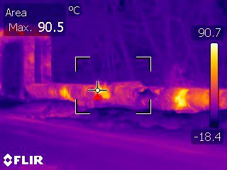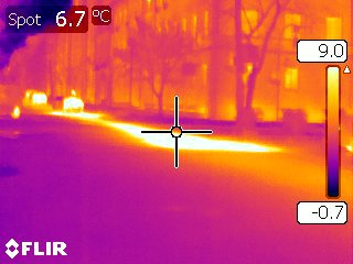 Тепловизор показывает, что температура крышки этого люка теплотрассы - от 35 до 75 градусов! Вот почему их так любят бездомные коты и собаки.