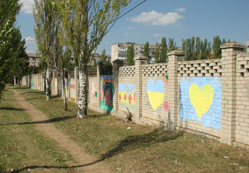 Забор вокруг фильтровальной станции водоканала Краматорска не узнать: десятки его секций украсились детскими рисунками в украинском колорите.