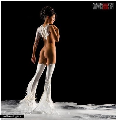 Однако, вся мужская половина населения уже замерла перед экранами, не так ли? :) Хотя не стоит отрицать, что фотографии сделаны качественно и интересно. Плюс надо отметить саму идею с молоком. В конце концов, далеко не каждому из фотографов и художников приходит в голову одеть своих моделей во что-то иное, кроме одежды. Здесь же хоть и одежды нет, но есть то, что ее достойно заменяет – молоко.