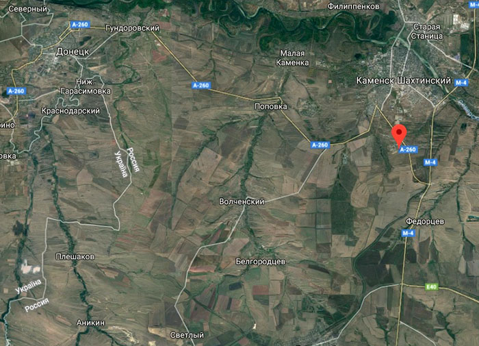 Украинский блогер @St_Engineers опубликовал в Twitter результаты наблюдения через карты Google за одной из точек на территории Российской Федерации на расстоянии в 18 километрах от границы с Украиной, расположенной в координатах 48.270943, 40.264019. Это рядом с городом Каменск-Шахтинским Ростовской области РФ.