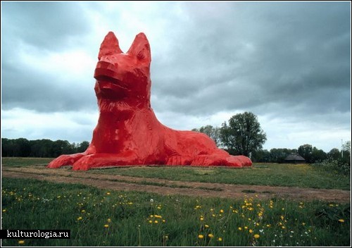 Среди инсталляций Хофмана также огромный кролик из утилизированной древесины (создан в рамках социального проекта) и красная сторожевая собака, «охраняющая» деревню Линс.