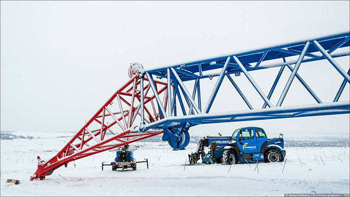 На окраине краматорского поселка Ясногорка 28 января начался монтаж стрелы крана Liebherr-LR1750, который будет задействован при строительстве первой ветроэнергетической установки.