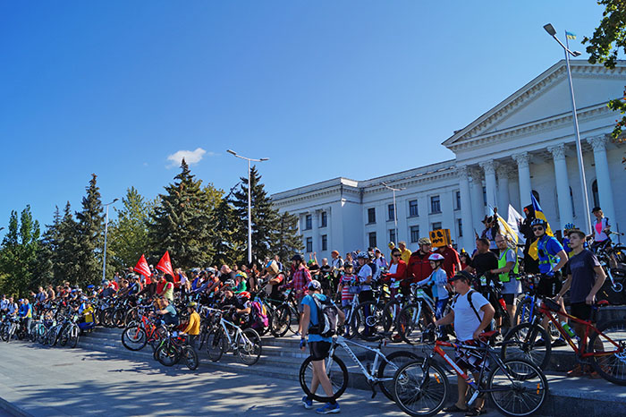 Собравшись на площади, в 11 часов участники велодня, в сопровождении полиции, отправились в заезд по улицам Краматорска.
