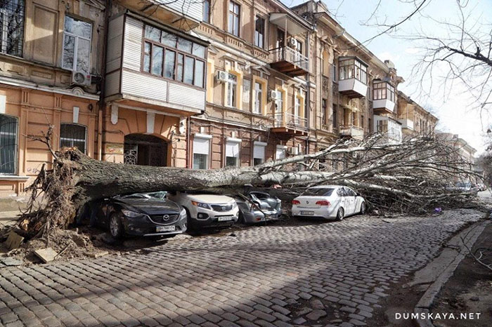 Сегодня, 24 февраля, Одесса переживает мощнейший удар стихии: ураганный ветер срывает крыши, валит деревья, повреждает коммуникации; сорвано движение общественного транспорта... Как сообщает местное издание "Думская", по состоянию на 13 часов, известно и погибшей в результате падения дерева женщине, еще одна одесситка, женщина с инвалидностью, завалена в собственном доме.