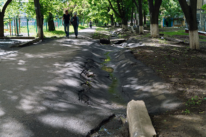 Именно здесь старшие поколения наученных опытом краматорчан обустроили из асфальта ливнеприемную канаву, - мудро и по-хозяйски.