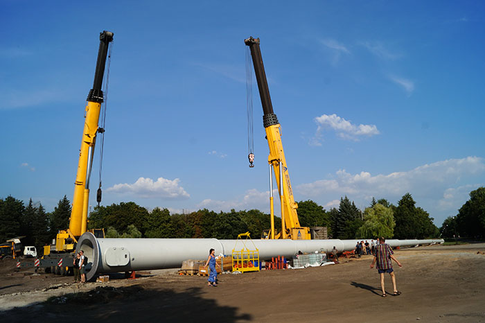 В краматорском парке "Юбилейный" полным ходом идут подготовительные работы к вертикальной установке 80-метровой мачты гигантского флагштока.