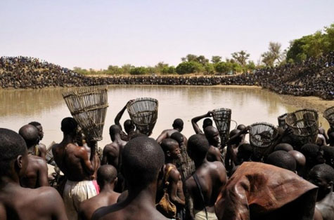 Аборигены Мали имеют право ловить рыбу в священных водах озера Antogo только один день в году. А так как полакомиться рыбкой аборигены не прочь, то в указанный день на берегу собираются сотни рыбаков. Несколько часов они возносят молитвы, а затем, по сигналу, хватают корзины и бросаются в озеро.