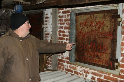 13. Сюда регулярно приходит старик, обрабатывает землю. Окна и двери он замуровал, так как железные ставни не помогают - их снимают в первую очередь.
