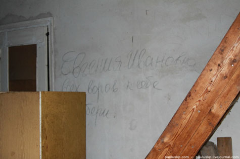 17. Отчаявшись, владельцы написали: "Евгения Ивановна, всех воров к себе забери". Евгения Ивановна - это бабушка, она здесь раньше жила, но не выдержала постоянных стрессов, умерла.