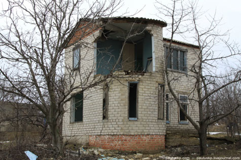 25. Белый двухэтажный дом построил ветеран-афганец. Хотел отдохнуть на природе от ужасов войны, но теперь его дача выглядит так, как будто в нее попал снаряд.