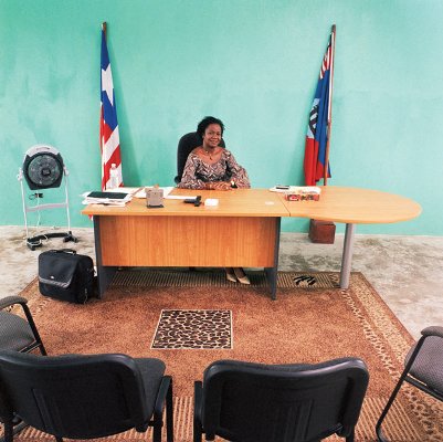 Кристиан Чеа, губернатор либерийского графства Ривер-Джи. Местные жители за свой счет построили ему офис из глины. Но в один прекрасный момент у управляемых им крестьян закончились деньги, а потому офис Чеа остался без дверей и окон:
