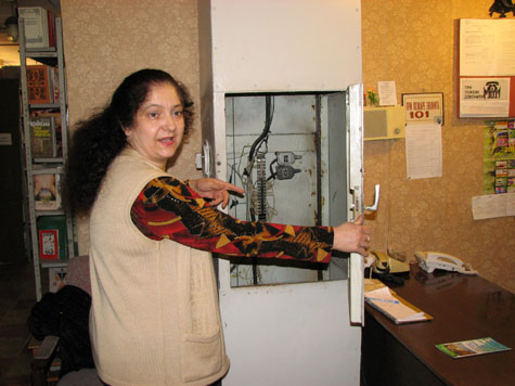 Однако чаще всего книги курсируют вверх-вниз при помощи вот такого шахтного лифта.