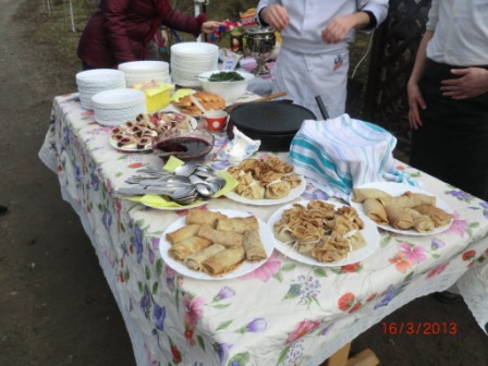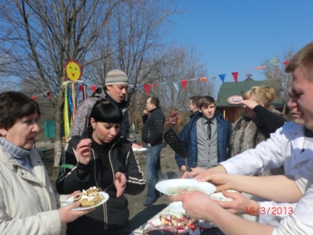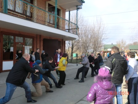 В "Приволье" была и шоу-программа, и ломящиеся от блинов и прочих кушаний столы, и масса веселых конкурсов с "горячительными" и шутливыми призами, и чучело, и даже бои на подушках!