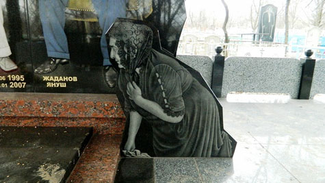 Здесь изображена даже скорбящая женщина, по всей видимости — все еще здравствующая.