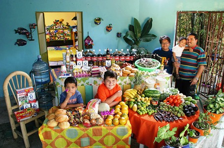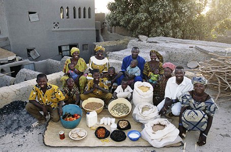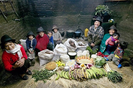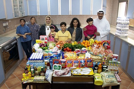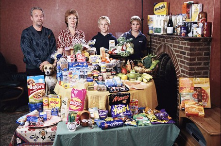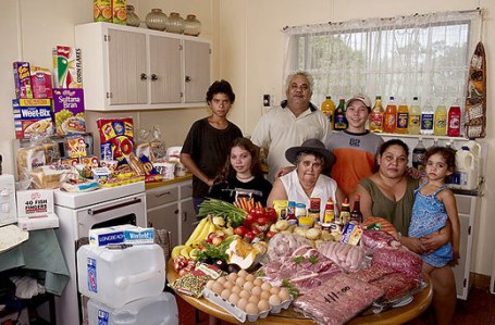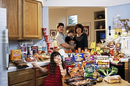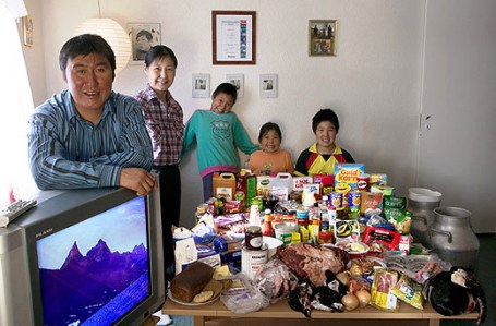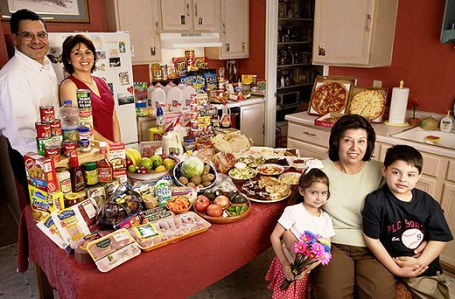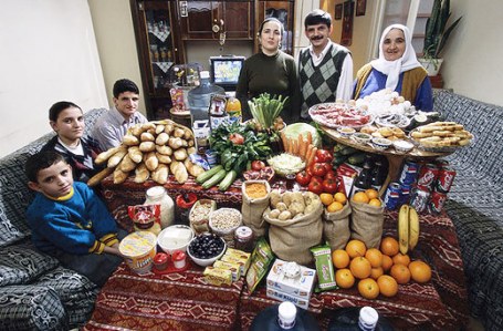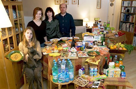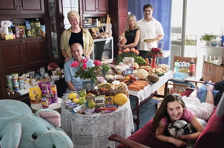 Для своего исследования Мензель подбирал в основном семьи из 4-5 человек. Особое место в каждой пищевой истории занимают общие портреты на фоне провианта, потребляемого за неделю.