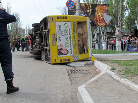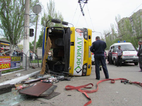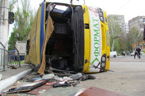 Сегодня, 30 апреля, на площади Кирова в Мариуполе перевернулся пассажирский автобус 124 маршрута. Жертв нет, но, по предварительным данным, двадцать пять человек получили травмы разной степени тяжести. Среди них двое 16-летних подростков.