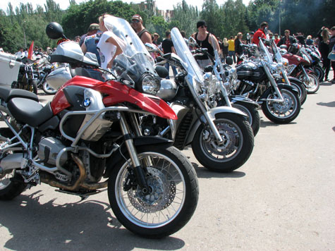 Гости прибыли в Славянск около 12 часов дня, и вмиг заполонили всю центральную площадь. Со сцены байкеров встретили тяжелым металлом, полюбоваться на дивное зрелище хлынули толпы жителей города.