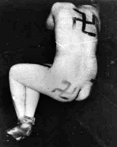 5. Зачастую на бритье головы не останавливались, рисовали краской свастику на лице или выжигали клеймо на лбу.