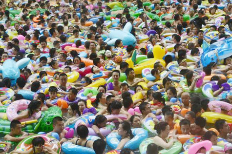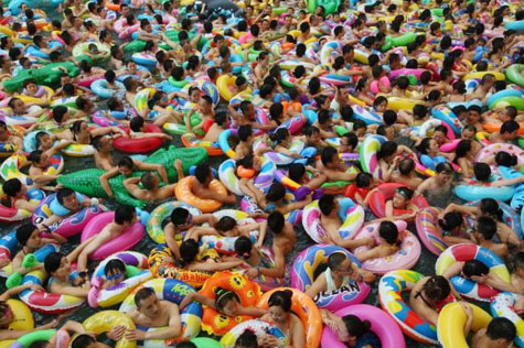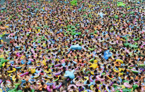 Около 15 тысяч туристов и местных жителей центральной провинции Сычуань, спасаясь от жаркого летнего зноя, ежедневно посещают местный аквапарк со странным названием «Китайское Мёртвое море».