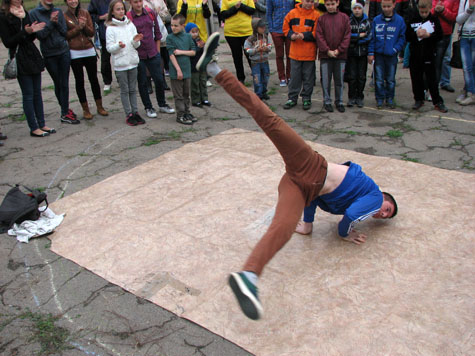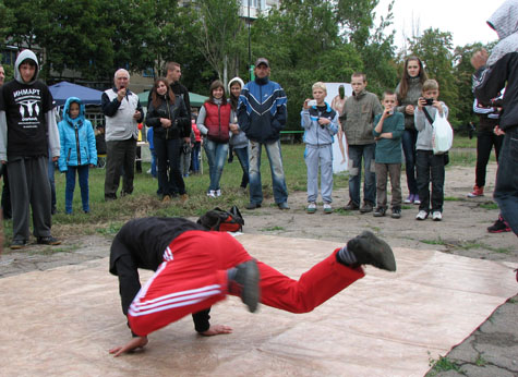 Фестиваль побывал в микрорайоне "Кондиционер", в школах №№ 18, 32 и 17, и вот сегодня - на улице Н. Курченко. Разумеется, предполагалось, что на фестивалях будут показывать себя не только приглашенные команды, но и местные ребята. По всей видимости, затея вполне удалась. По крайне мере, то, что довелось сегодня увидеть во дворе 3-й школы, говорит о том, что молодежь у нас вполне спортивная и творческая.