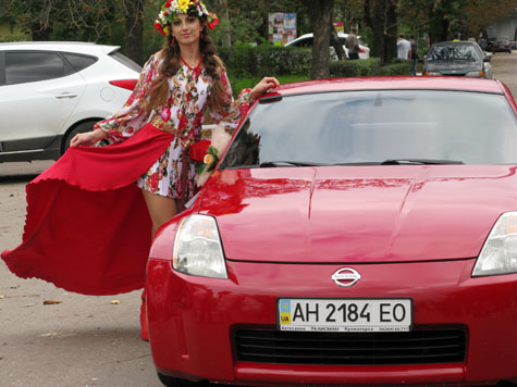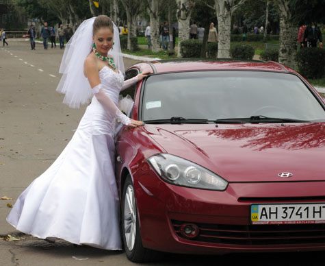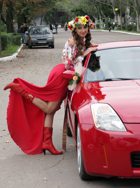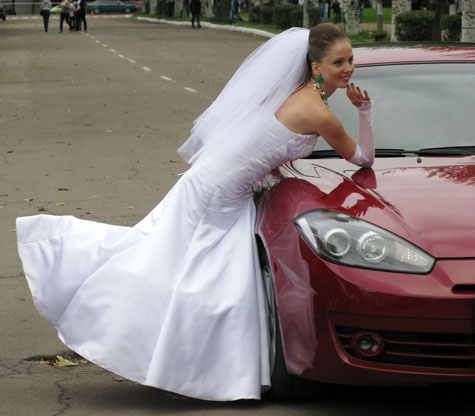 После официальной части, невест потянуло к красивым тачкам. Женщины!..