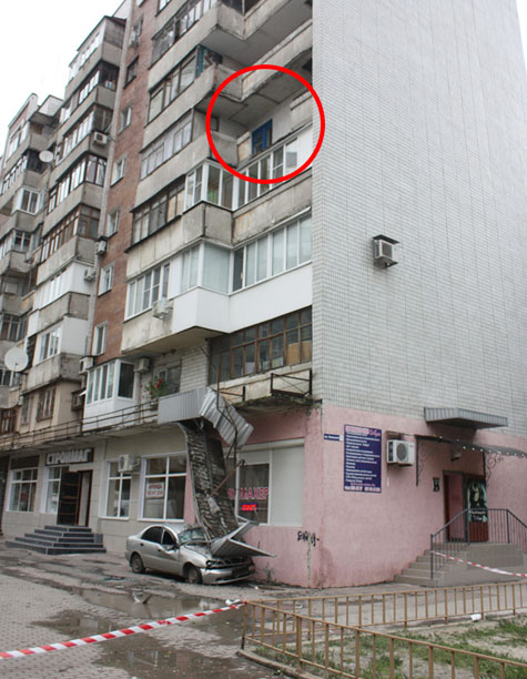 "27 сентября в 10:40 в Киевском районе Донецка в девятиэтажном жилом доме произошло частичное обрушение конструкций лоджии на пятом этаже", - сообщает ГУ ГСЧС Украины в Донецкой области.