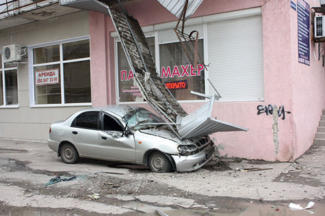 Плиты упали на «Daewoo Lanos», припаркованный возле дома.