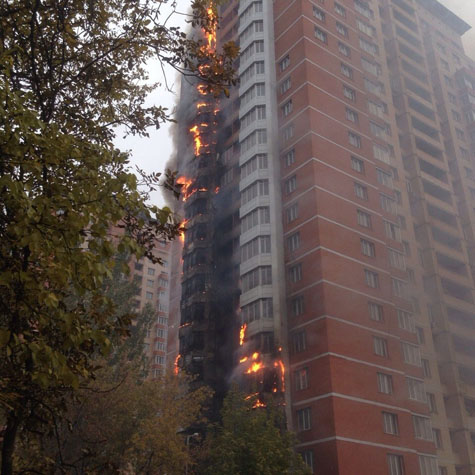"По прибытии на место происшествия пожарных подразделений было установлено, что горит облицовка балконов высотного недостроенного дома.