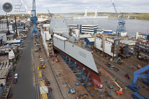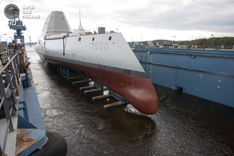 Американская верфь Bath Iron Works спустила на реку Кеннебек «эскадренный миноносец будущего» Zumwalt с бортовым номером DDG-1000.