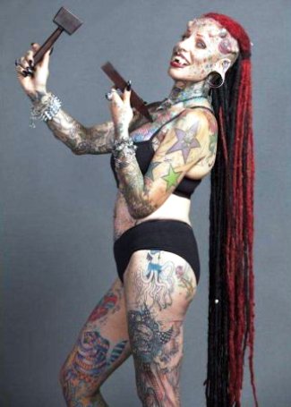 Все татуировщики, прежде всего, тренируются на своем теле, вот и Мария экспериментировала сначала на себе, прежде чем работать в салоне с клиентами. Женщина покрыла свое тело татуировками, не оставив практически живого места. А позже она придумала себе устрашающий имидж, чтобы, по ее словам, «выглядеть так, чтобы ни один подонок больше не смел к ней прикоснуться, потому что она умеет за себя постоять».