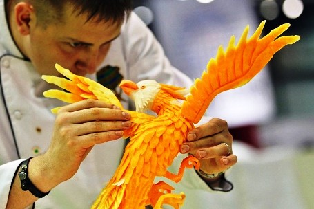 Россияне взяли золото и разделили серебро с поляками, а третьими стали немцы. Победители турнира удивили весь мир тонкостью и совершенством работ: ни один фотоотчет о конкурсе не обошелся без фото мастера карвинга Вадима Нефедова, вырезающего замечательного огненного орла. Впрочем, дынный викинг чеха Радека Вача и арбузная японка немца Винифрида Карраса тоже снискали восхищение зрителей.