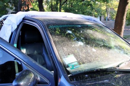 4. В объектив фотоаппарата корреспондента "Ревизора" попал автомобиль студента Одесской юридической академии, который пострадал от пуль правоохранителей, стрелявших по пытавшемуся скрыться преступнику: