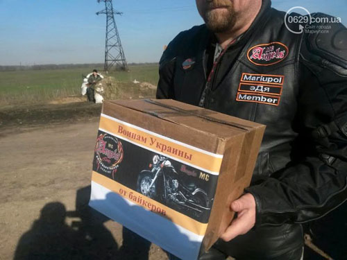 "За собственные средства байкеры приобрели для воинов средства гигиены, фонарики, теплые вещи, ключи для ремонта техники, рукомойники, емкости для питьевой воды и упаковали все это в специальные коробки",- рассказал президент мариупольского отделения мотоклуба "Angels" Андрей Немец.