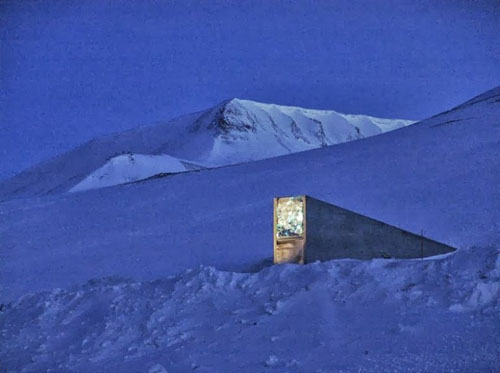 Расположенное приблизительно в 1,300 километрах к югу от Северного полюса, на норвежском острове Шпицберген, в подземной пещере, находится Глобальное Хранилище Семян – большая крепость, которая может поддержать до 4.5 миллионов видов семени. Часто называемое семенохранилищем "Судного Дня", Свальбард — страховой полис мира против ботанических бедствий. С его помощью производство пищевых продуктов могло быть перезапущено где угодно на планете после региональной, или глобальной катастрофы.
